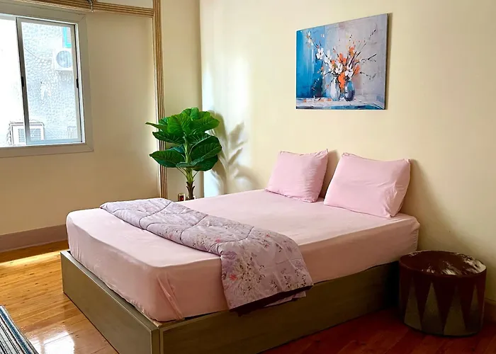 The 2-room Room In A Central Cairo is located 3.8 km from El Giza train station and only 6 minutes' walk from Cairo University. Staying in the apartment, nestled just near the Orman Botanical Gardens, guests can relax on a terrace.